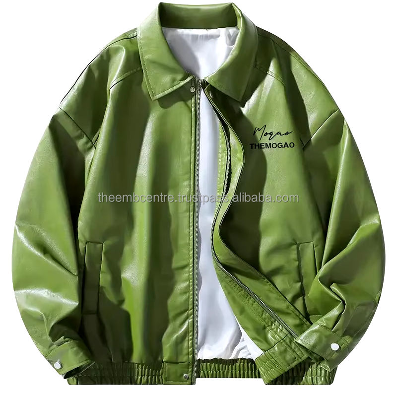 แจ็กเก็ตหนังแท้สำหรับผู้ชายเสื้อแจ็กเก็ตหนังมีซิปสำหรับฤดูหนาวโลโก้ผลิตตามสั่ง