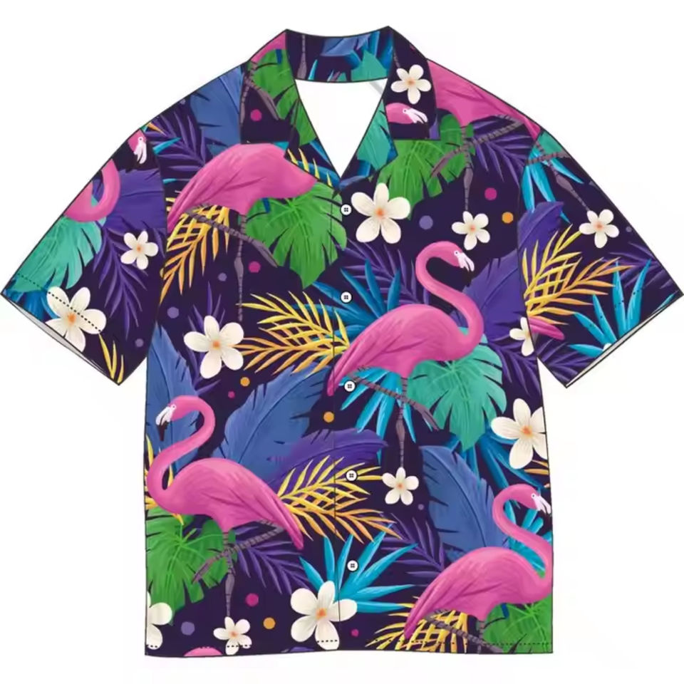 เสื้อฮาวายสำหรับผู้ชายเสื้อฮาวายพิมพ์ลายคอเสื้อแขนสั้น