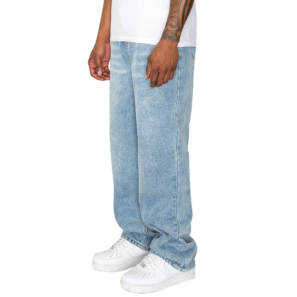กางเกงยีนส์ผู้ชายขาบานซักได้สีวินเทจสำหรับผู้ชายกางเกงเดนิมสไตล์สตรีทแวร์เฮฟวีเวตออกแบบได้ตามต้องการ