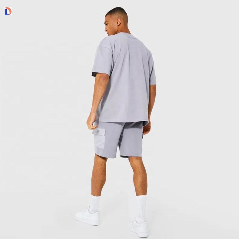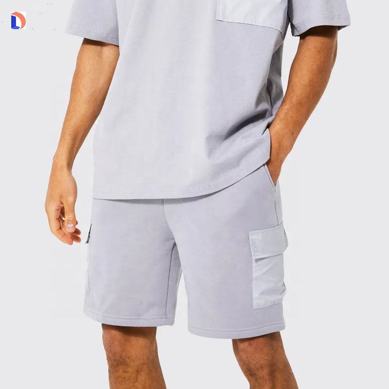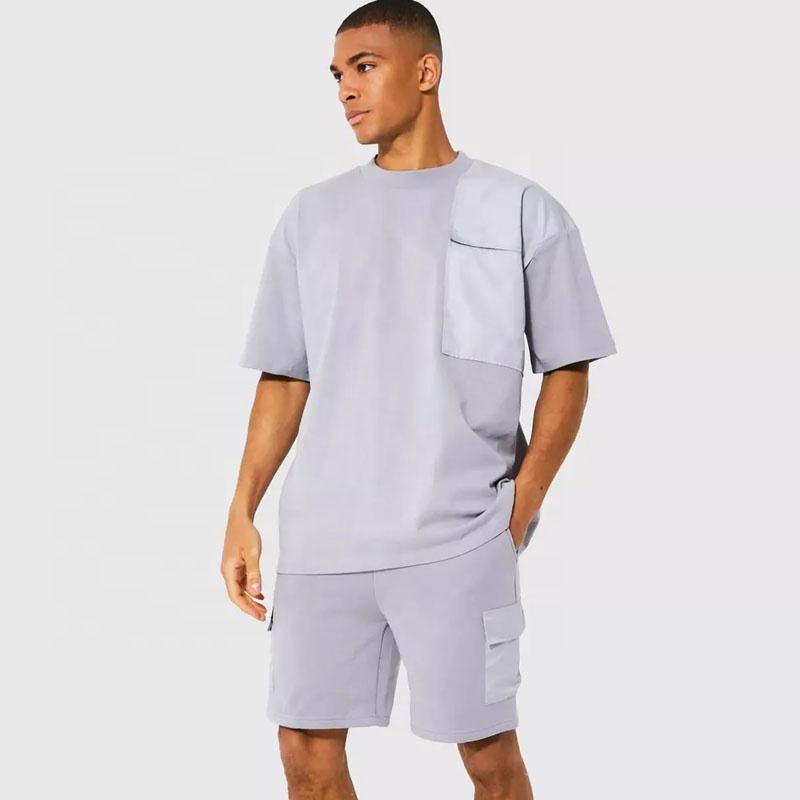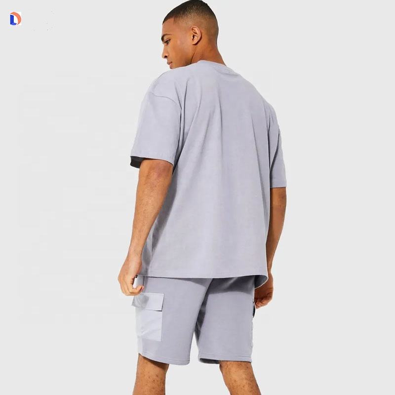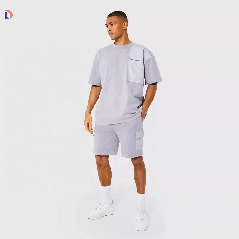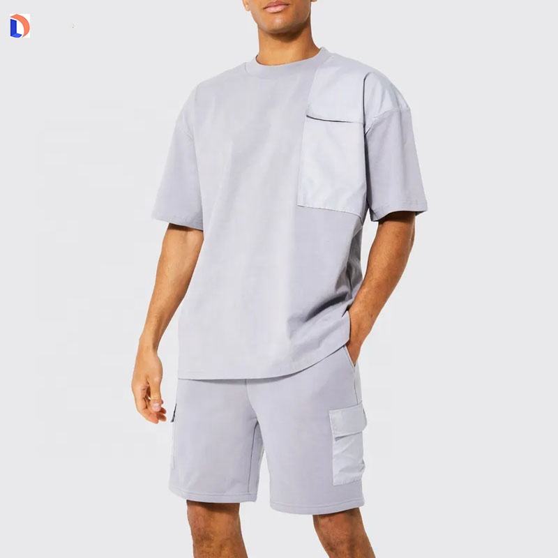 2024สองชิ้นสำหรับผู้ชายชุดฤดูร้อนแบบสองชิ้นสีล้วน OEM