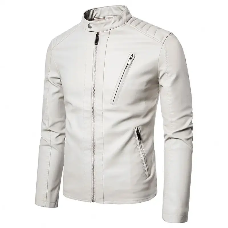 แจ็คเก็ตหนังแกะทรงสลิมสไตล์วินเทจ ระบายอากาศได้ดี สำหรับผู้ชาย รับสกรีนโลโก้ แจ็คเก็ตมอเตอร์ไซค์คุณภาพสูง สีสั่งทำได้