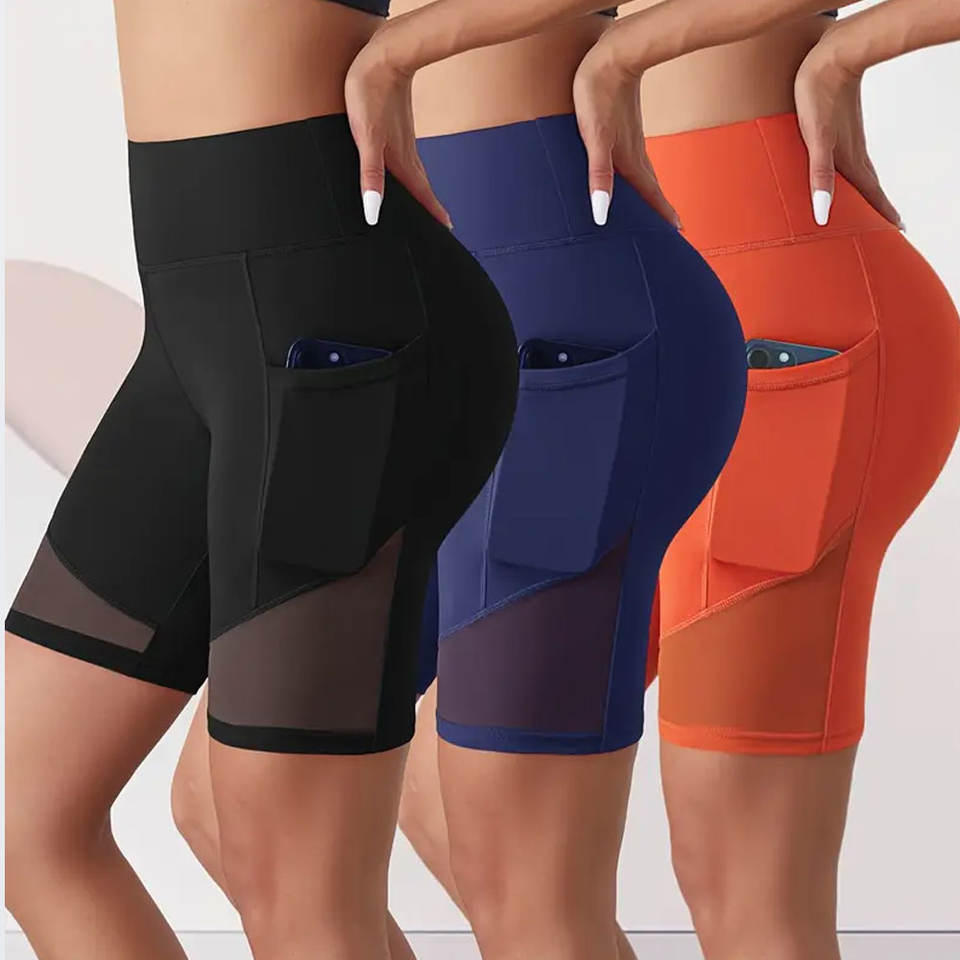 กางเกงขาสั้นสำหรับผู้หญิงสำหรับออกกำลังกายเล่นโยคะออกกำลังกายในยิมมีกระเป๋า