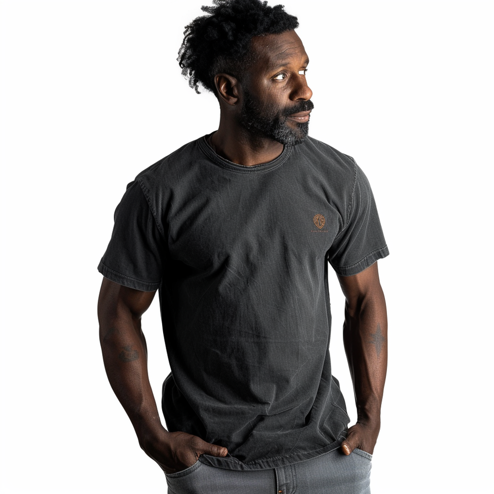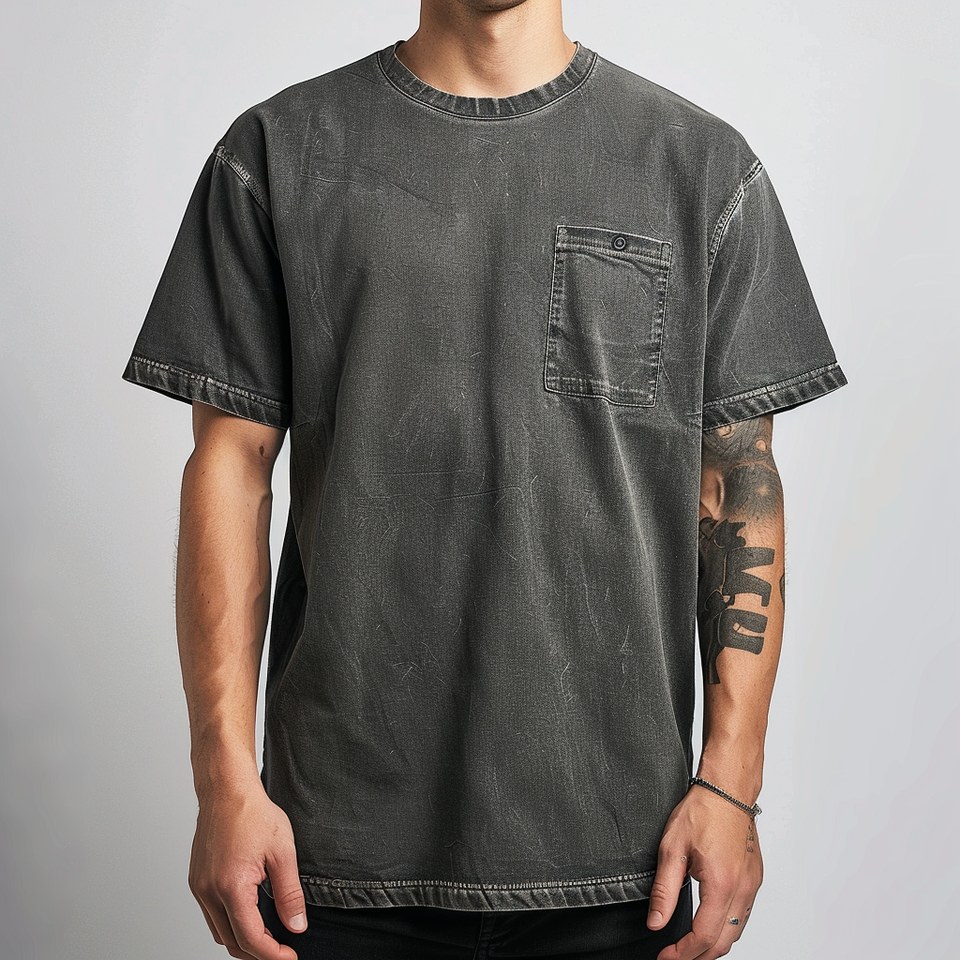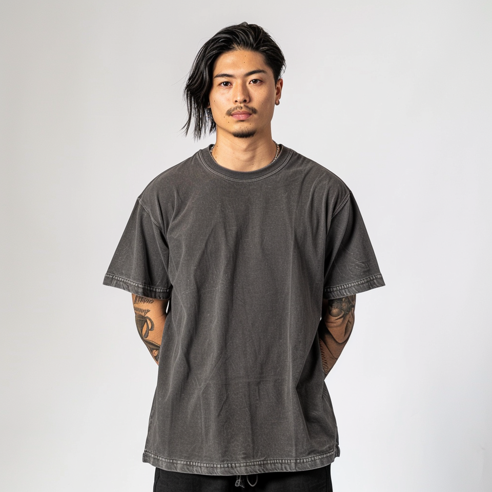 เสื้อยืดสีดำโอเวอร์ไซส์สำหรับผู้ชายเสื้อยืดฟอกกรดกราฟิกซักได้สำหรับผู้ชาย