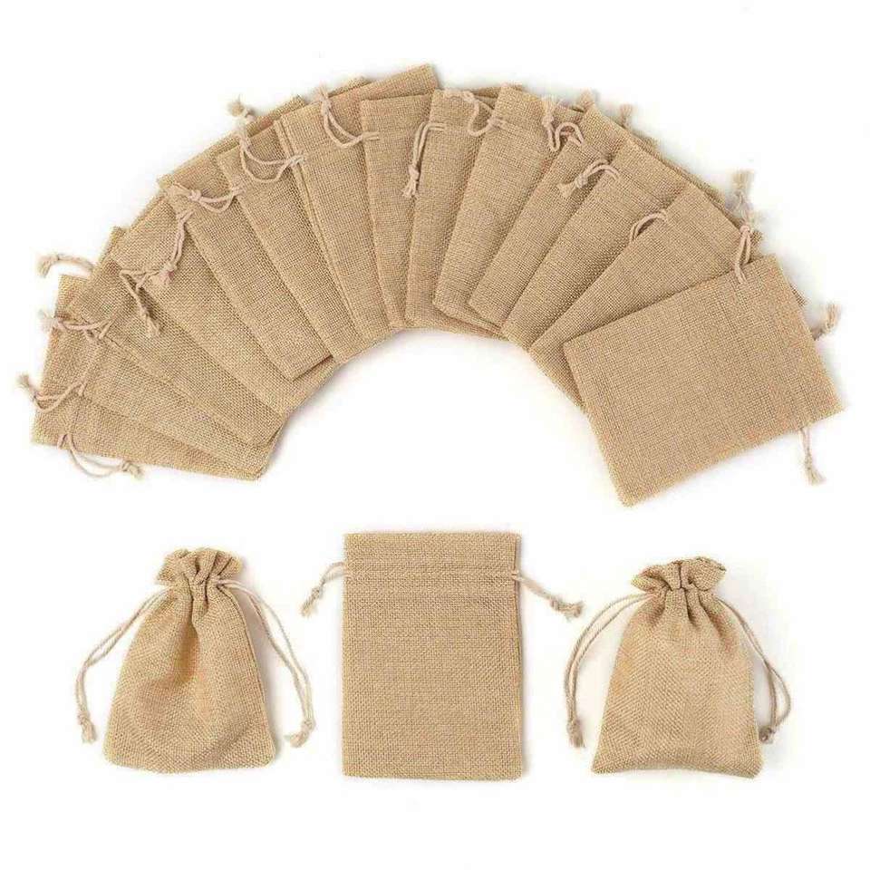 ถุงผ้ากระสอบป่านขนาดเล็กสำหรับใส่ของขวัญคริสต์มาส แบบมีเชือกผูก ราคาถูก รับผลิตตามสั่ง มีสินค้าในสต็อก ขายส่ง OEM