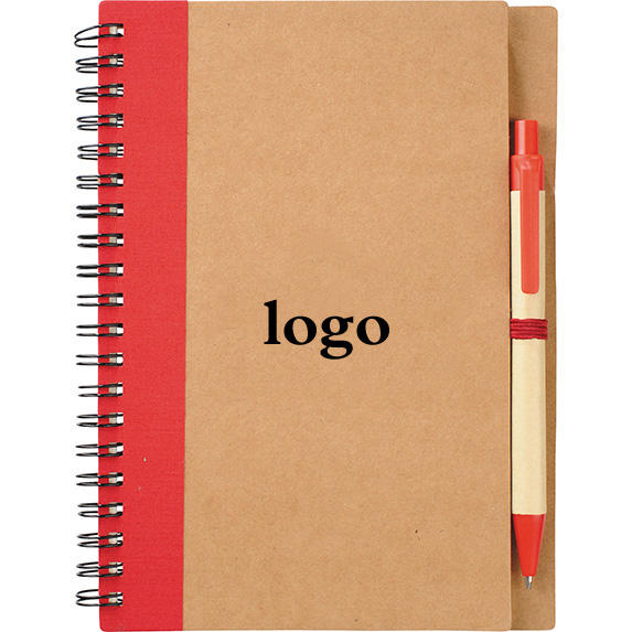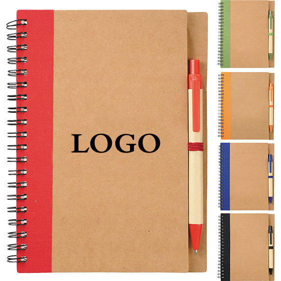 Oempromo สมุดบันทึกแบบเกลียวเป็นมิตรกับสิ่งแวดล้อมพร้อมปากกาสไตล์ธุรกิจปกกระดาษพีวีซีผ้าไหมพิมพ์สกรีนไดอารี่แบบพกพา