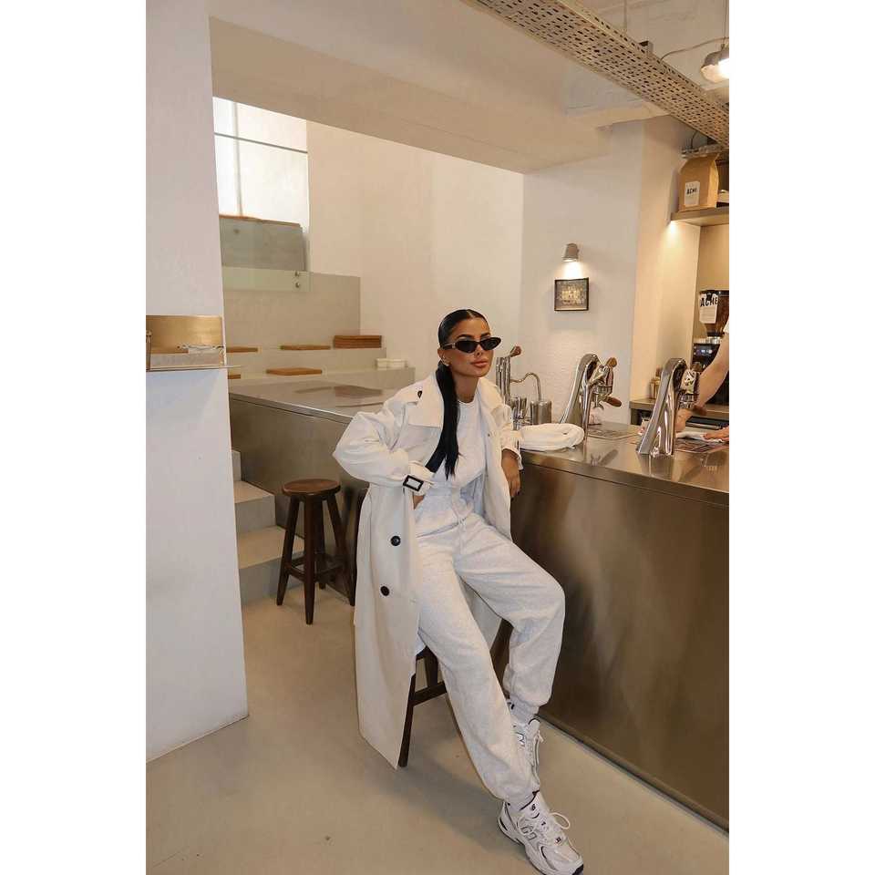 เสื้อโค้ทเทรนช์ออฟไวท์ โอซานนา แบบกระดุมสองแถว ผ้าลินินบุขนสัตว์ลายพิมพ์หนัง ผ้าถัก ความยาวสั่งทำได้