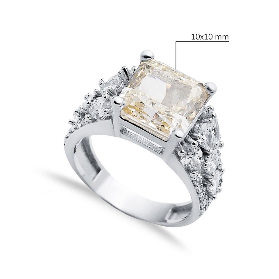 Offwhite CZ แหวนเงิน925ดีไซน์สี่เหลี่ยมทำด้วยมือสไตล์ตุรกีเครื่องประดับเงินสเตอร์ลิงสำหรับ925