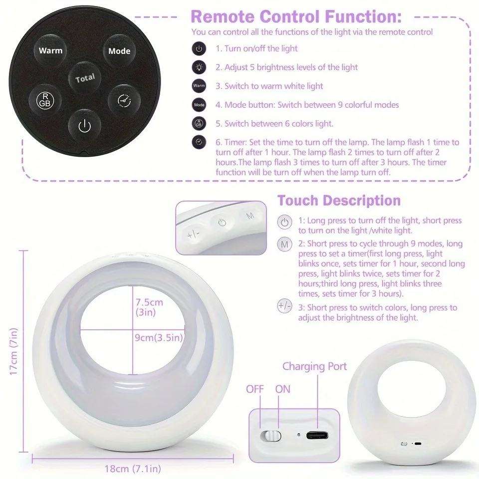 โคมไฟ LED สีสันสดใสสำหรับตกแต่งห้องนอนสำนักงานหรือห้องนอนข้างเตียงโฮมรูมควบคุมด้วยรีโมท RGB แบบมินิมอล