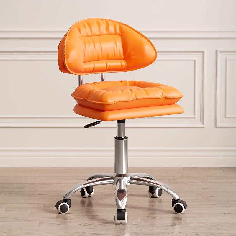 เก้าอี้สำนักงานปรับระดับความสูงได้ เบาะนั่งหมุนได้ หนังสีส้ม สำหรับใช้ในบ้าน สำนักงาน หรือสถานีงาน