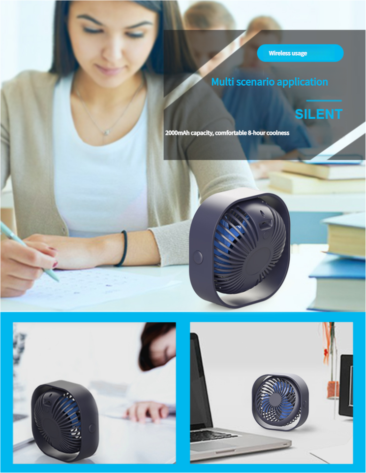 พัดลมระบายอากาศแบบชาร์จไฟได้สำหรับโต๊ะทำงานโต๊ะทำงานพัดลมขนาดเล็กชาร์จได้มีเสียงรบกวนต่ำน้ำหนักเบาระบายความร้อนด้วยโต๊ะ