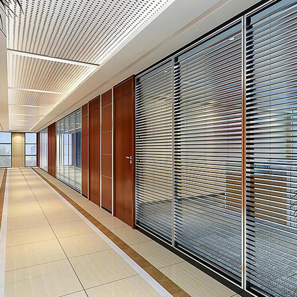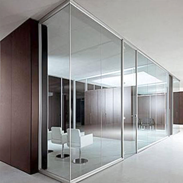 ผนังกั้นกระจกแบบไร้กรอบสำหรับสำนักงาน พร้อมโปรไฟล์ด้านบนและด้านล่าง ผนังกระจกมองทะลุได้เต็มที่