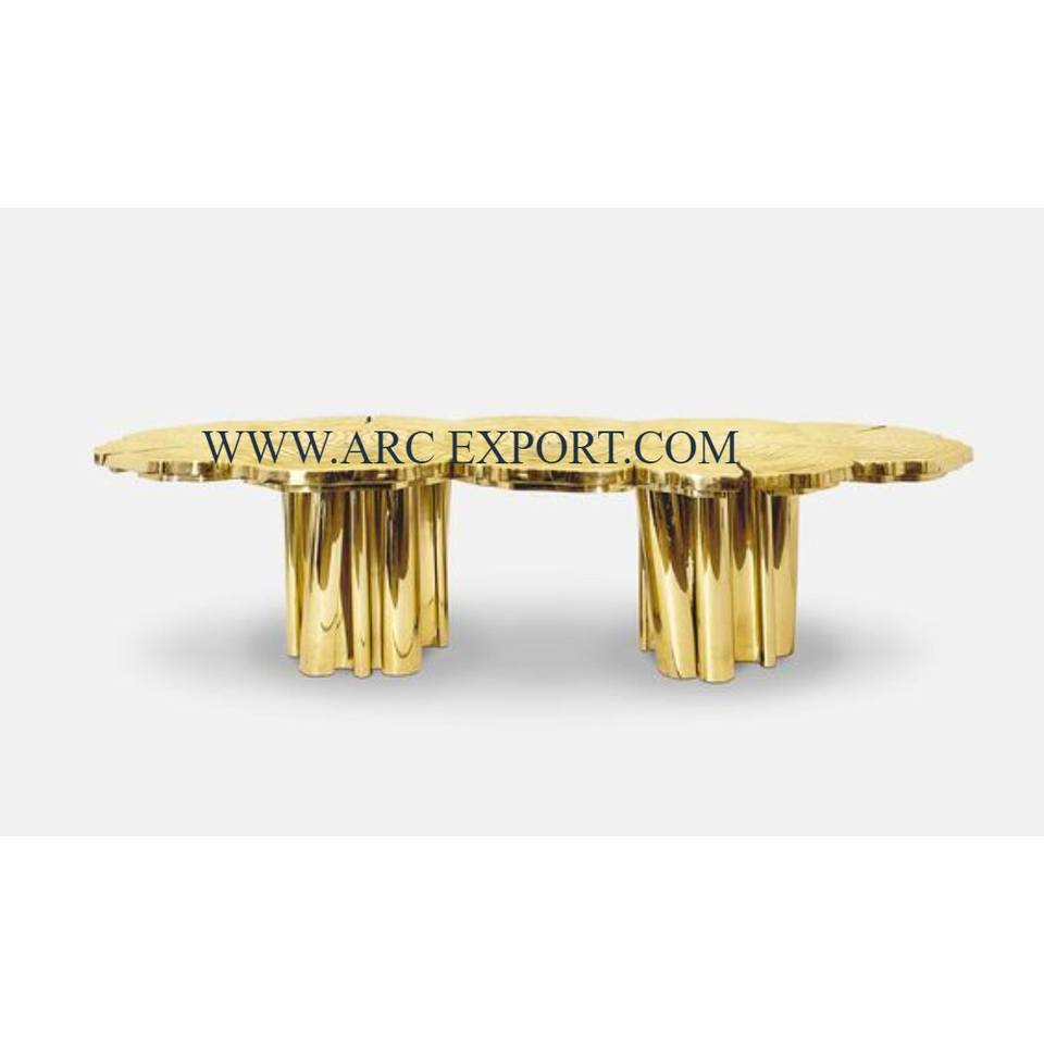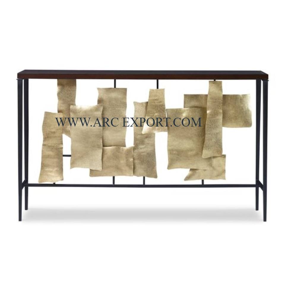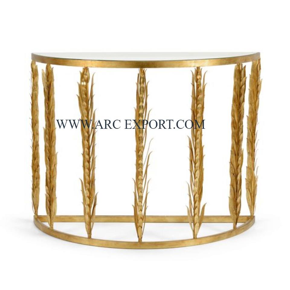 โต๊ะคอนโซลกลางสำนักงานโรงแรมและห้องโถงโต๊ะวินเทจสีทองขัดเงาทำจากอลูมิเนียมตกแต่งบ้านโต๊ะคอนโซลในราคาที่ดีที่สุด