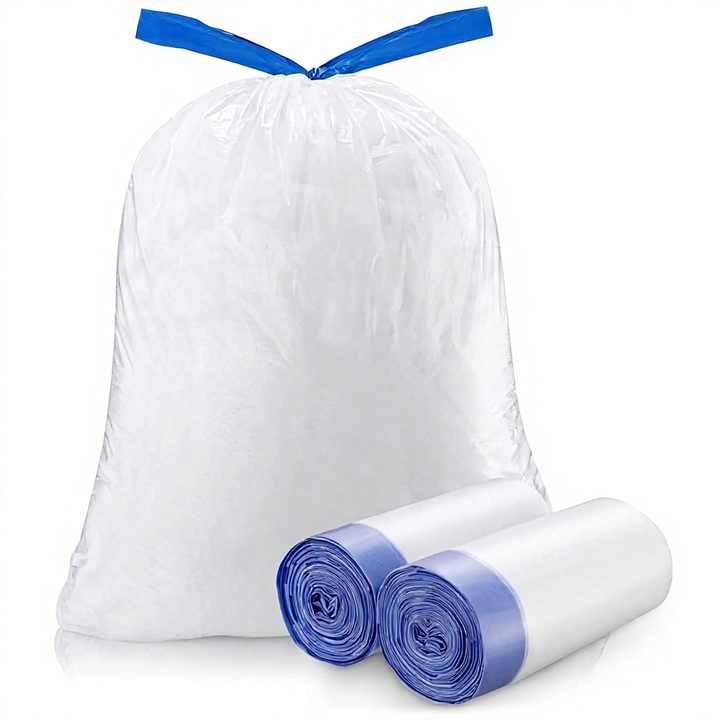 ถังขยะสำนักงาน ห้องนั่งเล่น ห้องครัว และห้องน้ำ - ถุงขยะ PE แบบใช้แล้วทิ้ง มีเชือกรูด หนา ยืดหยุ่น ไม่มีกลิ่น รีไซเคิลได้