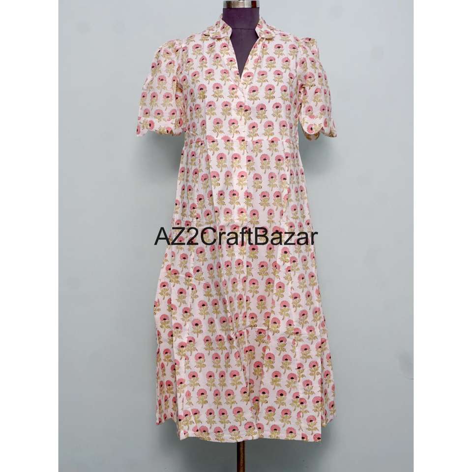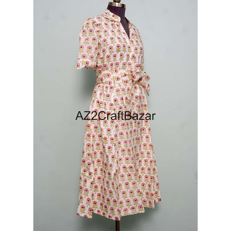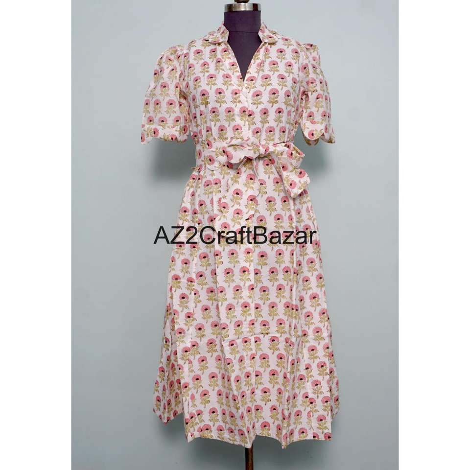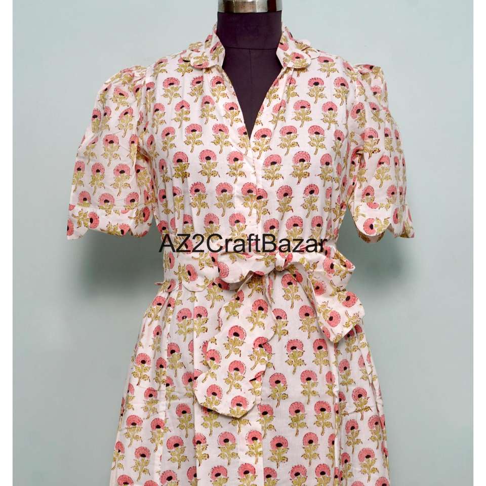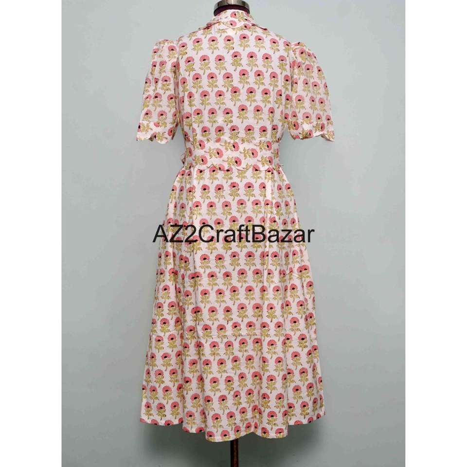 ชุดเดรสลำลองสไตล์หวานสำหรับใส่ไปทำงานหรือไปงานปาร์ตี้ ลายดอกพิมพ์ลายบล็อกด้วยมือ ผ้าฝ้ายถัก ทรงคังกูร่า สวยงาม ใส่สบาย