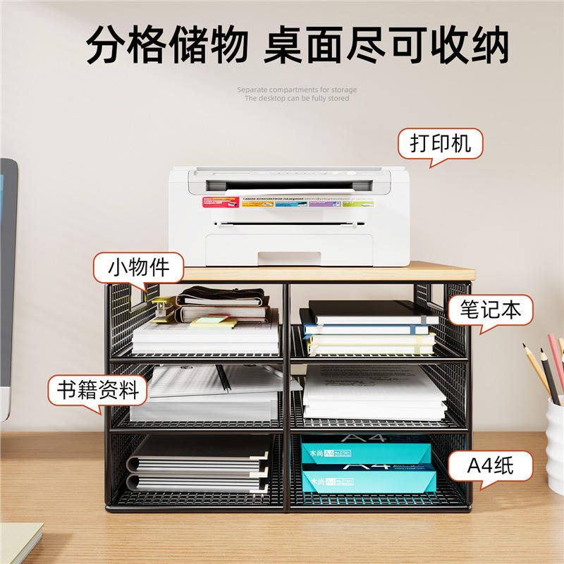 ชั้นวางเครื่องพิมพ์สำนักงาน 6 ชั้น ชั้นวางเอกสารเหล็กคาร์บอนแบบตั้งโต๊ะ ชั้นวางติดผนังทนทานสำหรับสถานีงานสำนักงาน