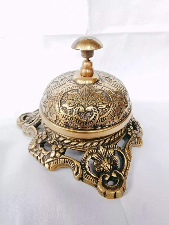กระดิ่งตั้งโต๊ะทองเหลืองสำหรับแผนกต้อนรับ ใช้เรียกแขกและบริการที่เคาน์เตอร์ พร้อมกลไกดีดที่เรียบลื่น