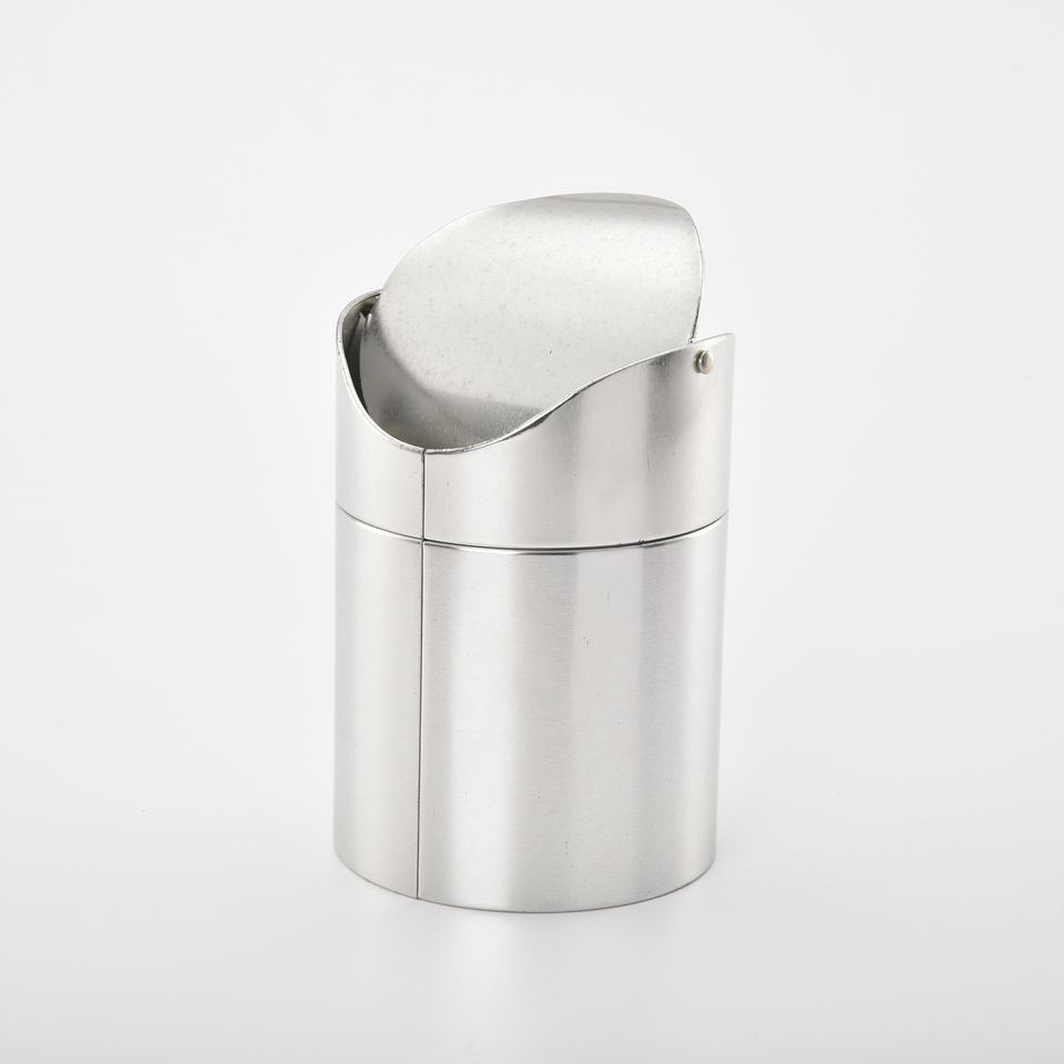 ถังขยะสีเงินขนาดเล็กตั้งโต๊ะโลหะถังขยะกระป๋องสำหรับใช้ในบ้านและเด็กของขวัญ116X165