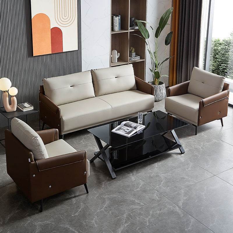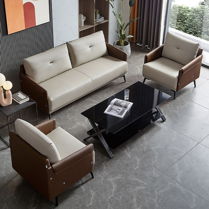 ชุดโซฟาสำนักงานหนังสามที่นั่งพร้อมโต๊ะกาแฟสำหรับห้องประชุม โครงโลหะฟองน้ำความหนาแน่นสูงทนทาน
