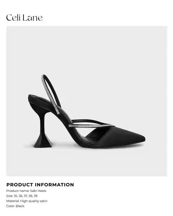 รายละเอียดผลิตภัณฑ์:วัสดุซาติน-สายรัดหินประดับ-flared 9 cm ส้น