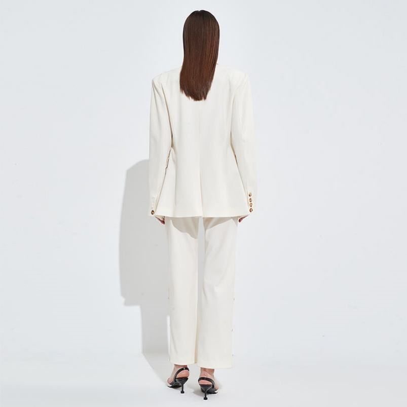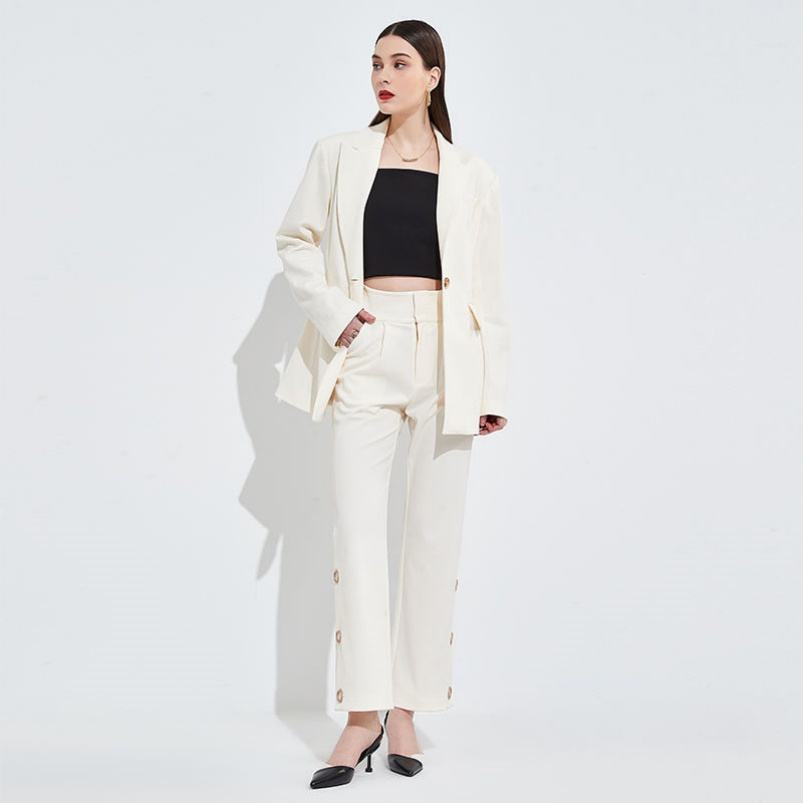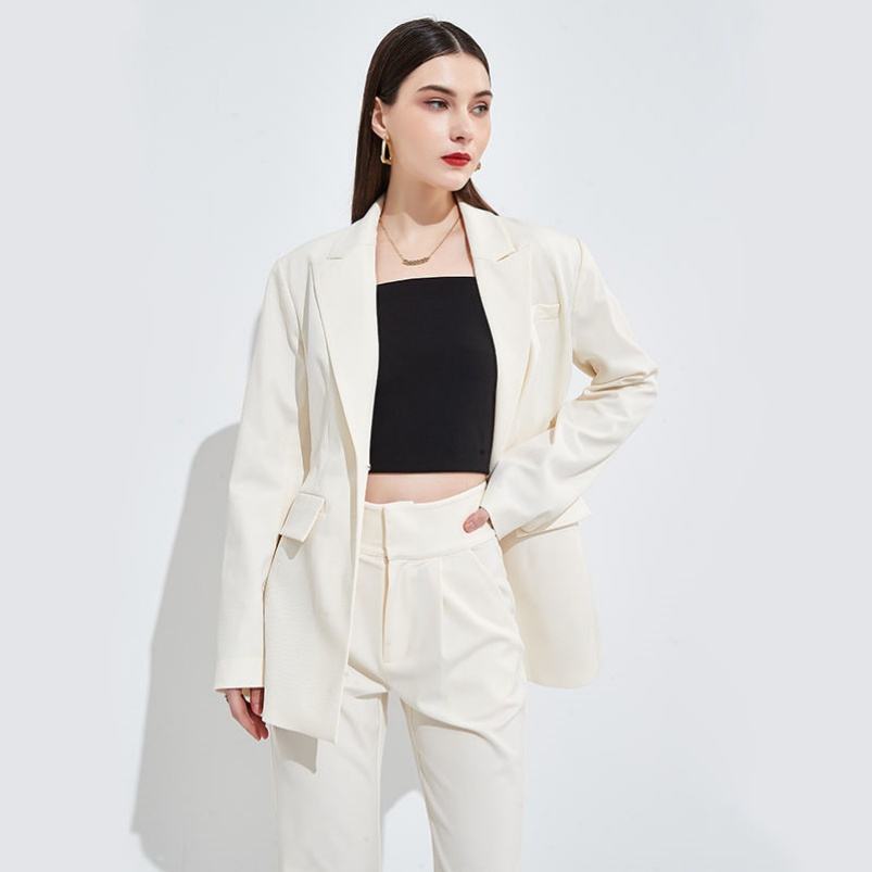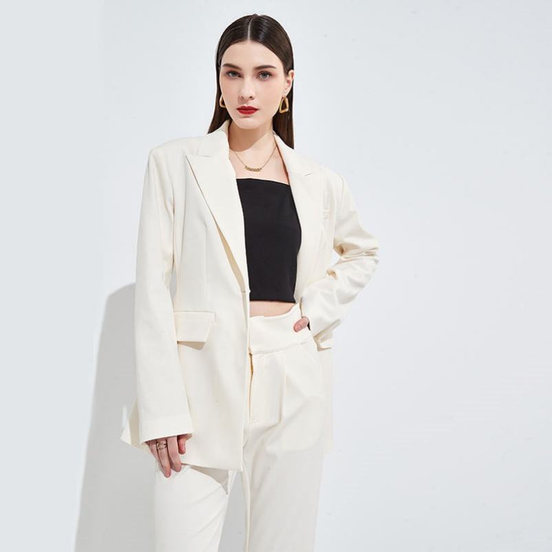 ชุดสูททำงานสำหรับผู้หญิงชุดสูททำงานสีขาวทรงหลวมดีไซน์ใหม่ฤดูร้อน