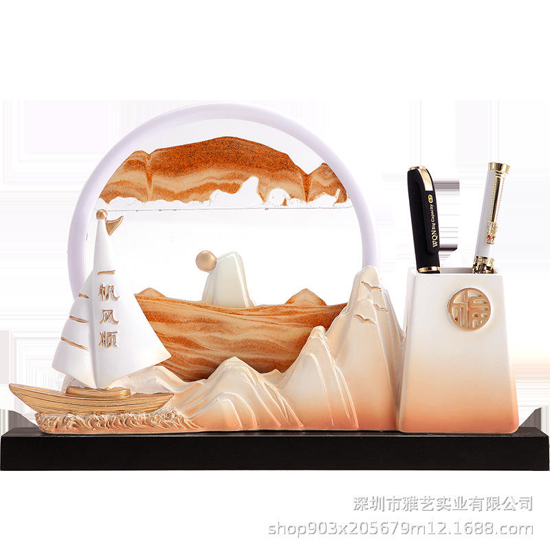 สำนักงานการศึกษาบ้านแบบสร้างสรรค์ใหม่ห้องนั่งเล่นจีนที่ใส่ปากกาประดับด้วยทรายไหลของตกแต่งงานฝีมือทำจากเรซิน