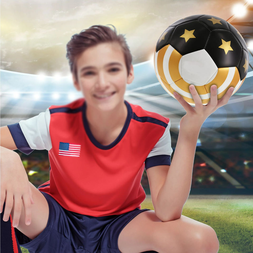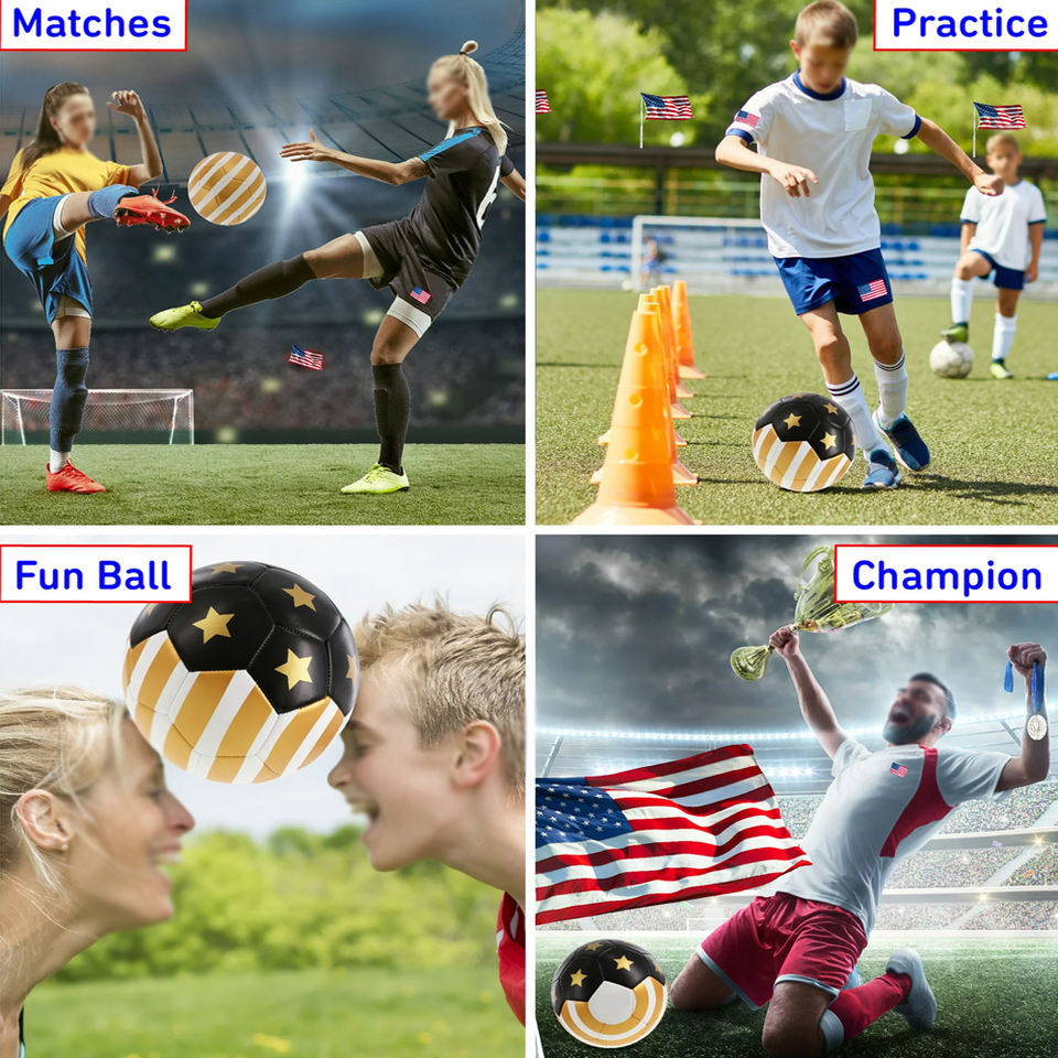ลูกฟุตบอลสำหรับการแข่งขันอย่างเป็นทางการ ทำจากวัสดุ PU พร้อมลายพิมพ์รูปดาว คุณภาพดี สามารถปรับแต่งได้ เหมาะสำหรับผู้ใหญ่และเด็ก