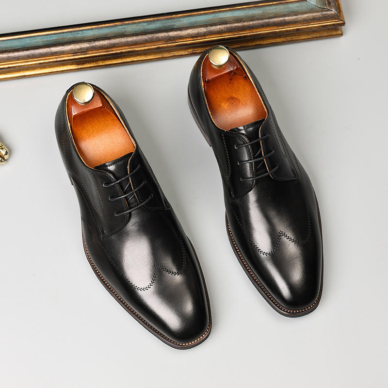 รองเท้าทางการสำหรับผู้ชาย รองเท้าเดอร์บี้หนังวัวแท้แบบคลาสสิก รองเท้าสำหรับใส่ทำงานอย่างเป็นทางการ พื้นรองเท้ากันลื่น เหมาะสำหรับใส่ในออฟฟิศ