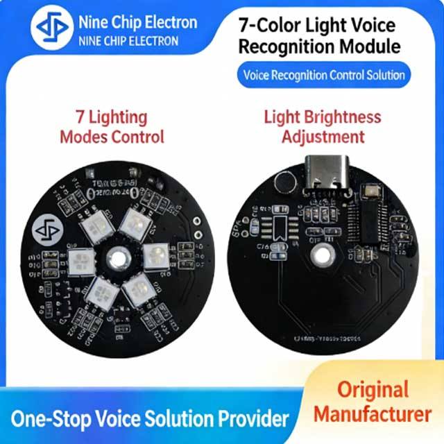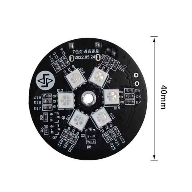 โมดูลควบคุม AI แบบออฟไลน์ รุ่น NRK3301 ซีรีส์ OEM ผู้ผลิต โมดูลจดจำเสียงพร้อมไฟเจ็ดสีสำหรับหุ่นยนต์
