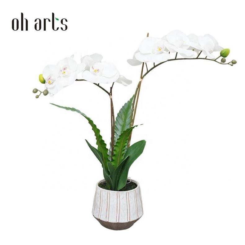 ออห์อาร์ตส์ ของตกแต่งใหม่ กล้วยไม้ประดิษฐ์สัมผัสเหมือนจริงในกระถางเซรามิก อะโลคาเซีย บอนไซ ต้นไม้ประดับปลูกในกระถาง