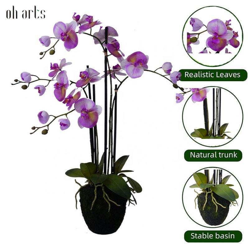 Oh Arts Real Touch Flower Pink Phalaenopsis Pot Plant Latex Flowers Orchid for Sale Latex Artificial