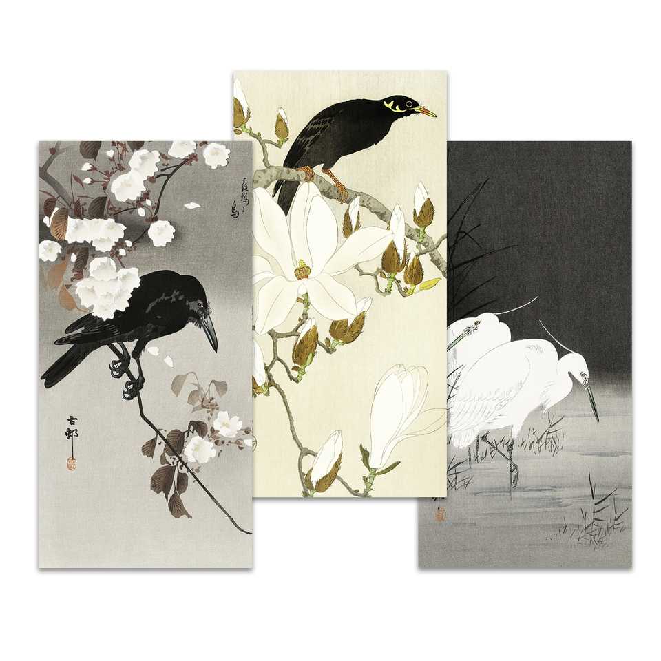 โอฮาร่า โคซอน ชุดภาพพิมพ์ศิลปะ 3 ชิ้น กระดาษเคลือบ 250 GSM ลายภาพนิ่งที่มีสไตล์