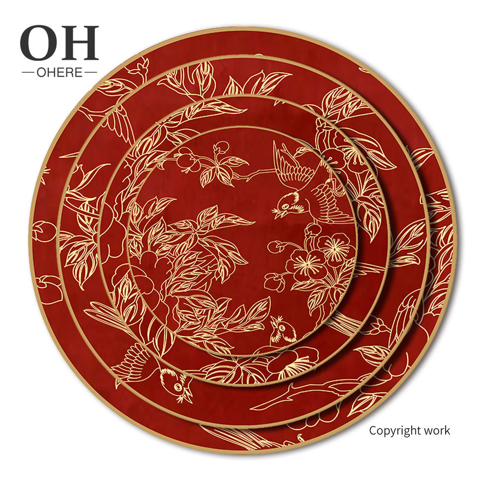 Ohere ชุดอาหารเย็นเซรามิกสุดหรู,จานเซรามิก Vajillas ขอบทองสีแดงสไตล์ราชวงศ์สำหรับอาหารเย็นปี2021