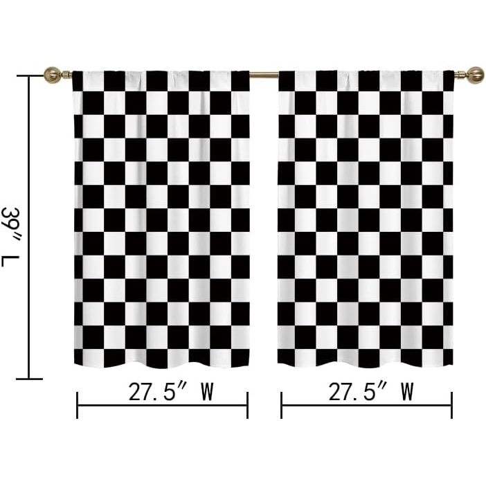 Ohocut ม่านลายตารางหมากรุกขนาดเล็กสีดำและสีขาวสำหรับห้องครัวบ้านไร่แบบชนบท