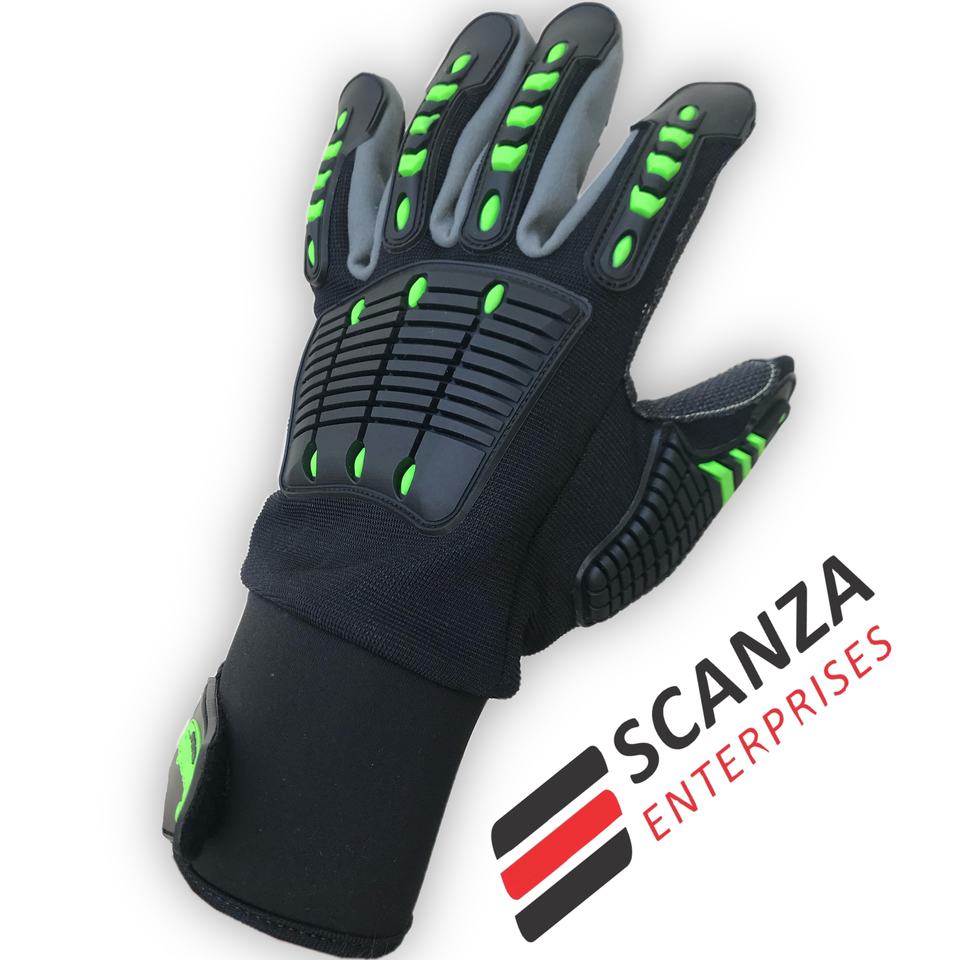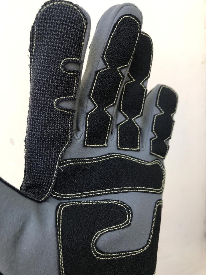 ถุงมือก่อสร้างโพลีเอสเตอร์แบบหนาพิเศษสำหรับงานน้ำมัน ทนทานต่อแรงกระแทก กันลื่น ระบายอากาศได้ดี ปรับขนาดข้อมือได้ ขนาด 10 นิ้ว น้ำหนัก 11 ออนซ์
