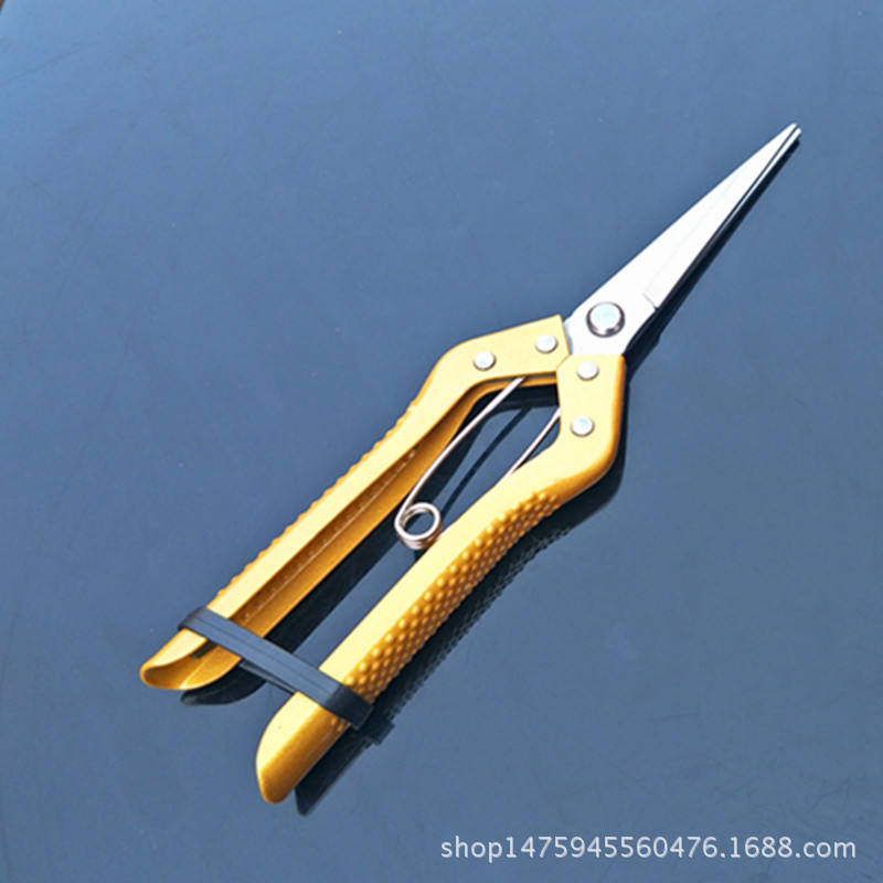 กรรไกรตัดผลไม้อคาฮิโร 190 มม. เหล็กกล้าคาร์บอนสูง หัวตรง สีเหลือง เครื่องมือทำสวนสำหรับการเก็บเกี่ยวและการลดความหนาแน่นของต้นไม้
