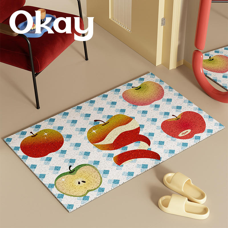 พรมเช็ดเท้าลายแอปเปิ้ล รูปทรงสี่เหลี่ยมผืนผ้า สำหรับใช้ภายในบ้าน ป้องกันฝุ่น ลื่นยาก ทำจาก PVC ซักล้างได้