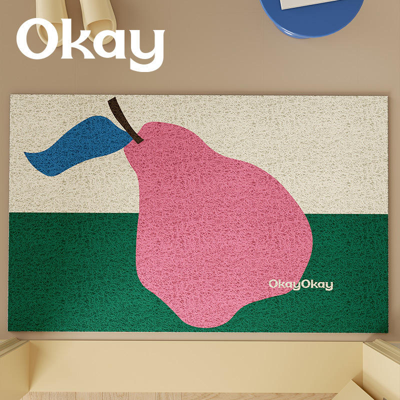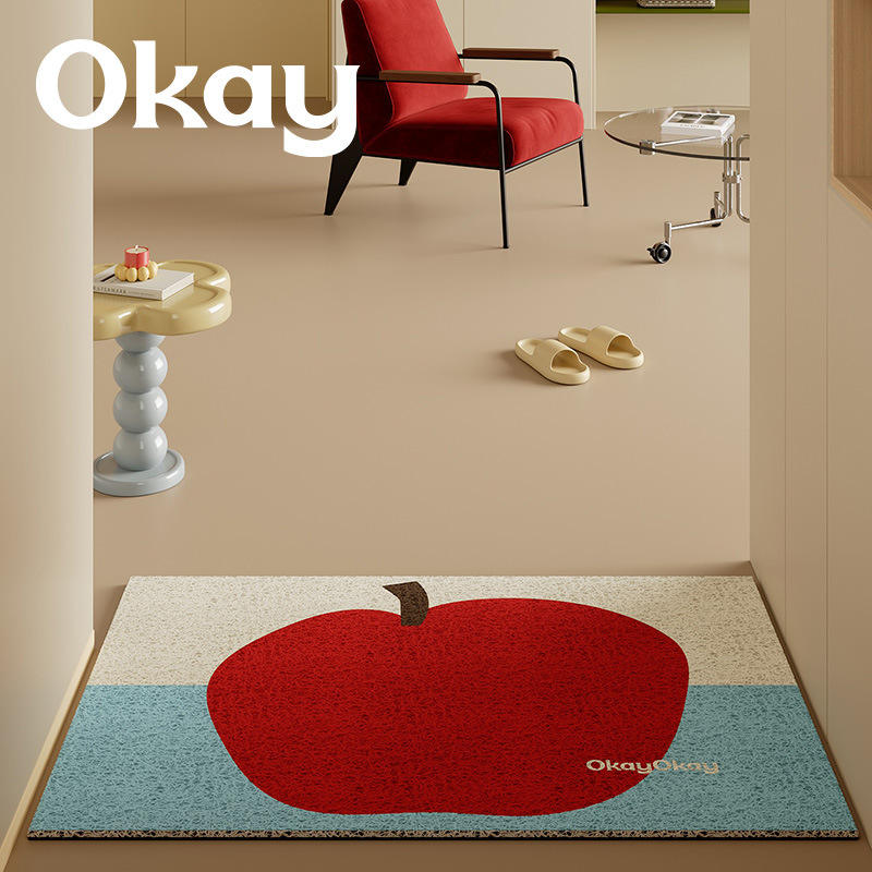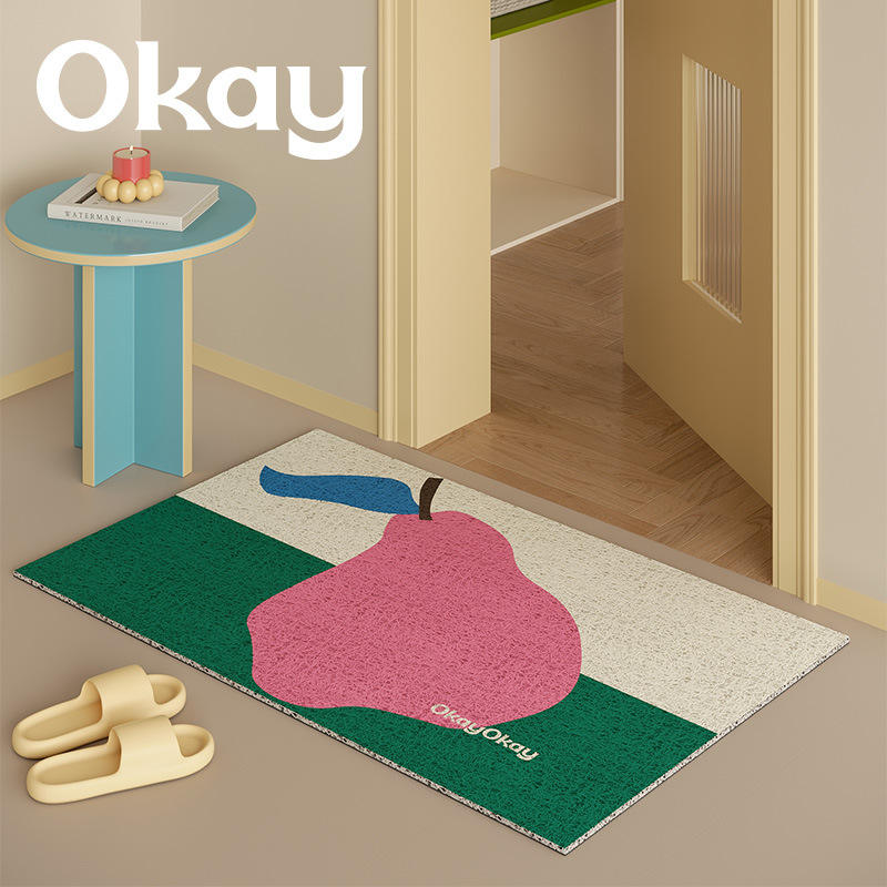 โอเคแล้ว พรมเช็ดเท้ารูปแอปเปิ้ลและลูกแพร์ รูปทรงสี่เหลี่ยมผืนผ้า สำหรับใช้ภายในบ้าน ซักล้างได้ กันลื่น เหมาะสำหรับทางเข้าบ้านและห้องครัว