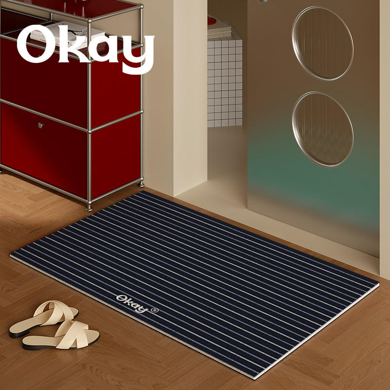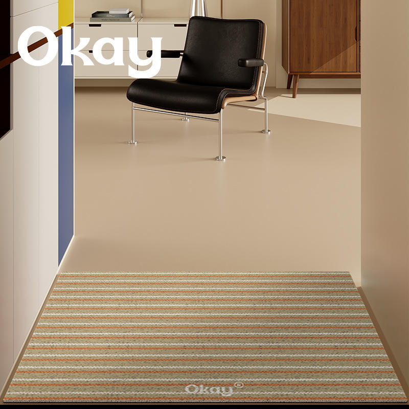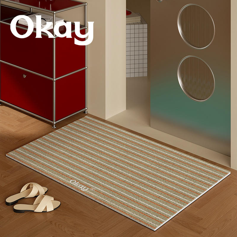 โอเค สตริปพ์ เอ็นเทรย์วี ดอร์แมท พรมเช็ดเท้ารูปสี่เหลี่ยมผืนผ้า กันลื่น ทนต่อคราบน้ำ ซักล้างได้ ลายหญ้าสนสีส้ม