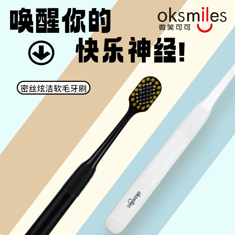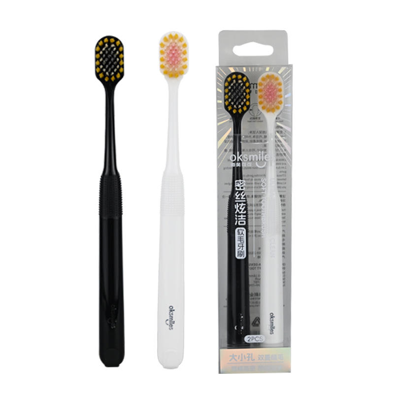 แปรงสีฟันขนนุ่มอ็อกสไมล์ 2 ชิ้นแปรงสีฟันสำหรับผู้ใหญ่แบบแมนนวล คุณภาพสูง ขนนุ่ม สีขาวและสีดำ
