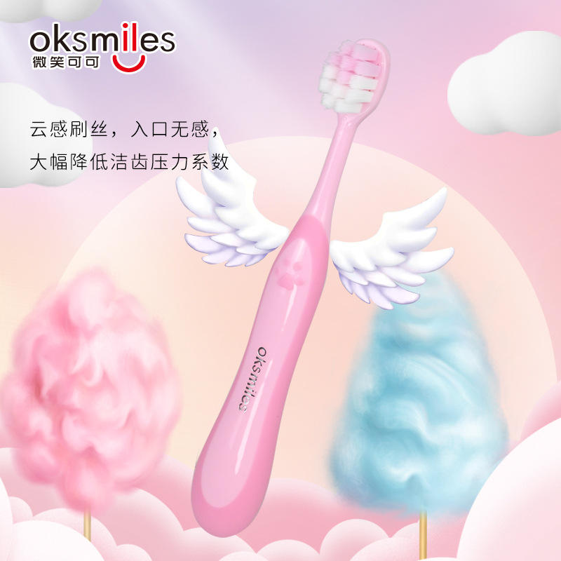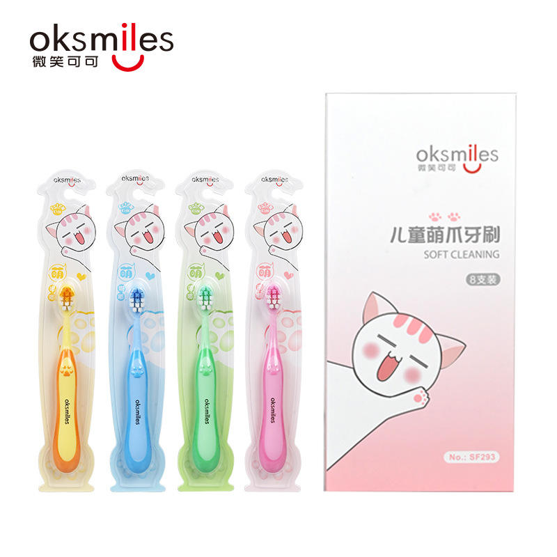 แปรงสีฟันแบบใช้มืออ็อกสไมล์สำหรับเด็ก ขนแปรงนุ่ม ดีไซน์ลายการ์ตูนอุ้งเท้าแมว สีชมพู