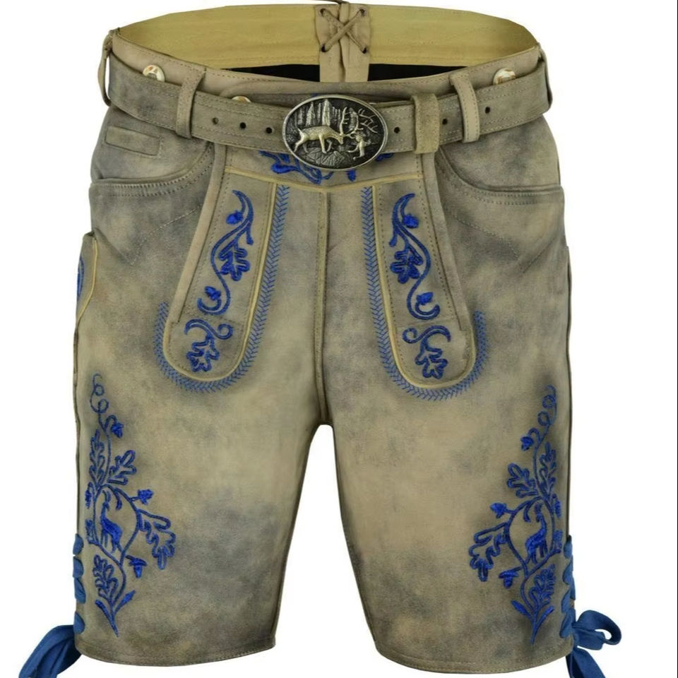 Oktoberfest Lederhosen กางเกงขาสั้นหนังบาวาเรียดั้งเดิมเยอรมัน