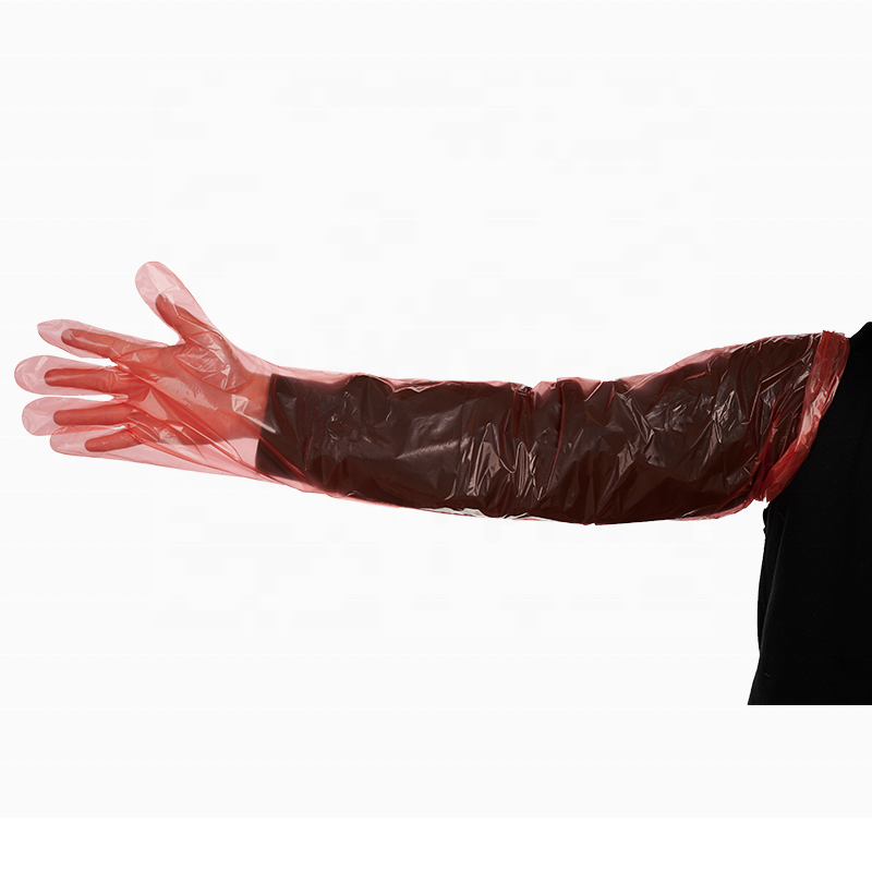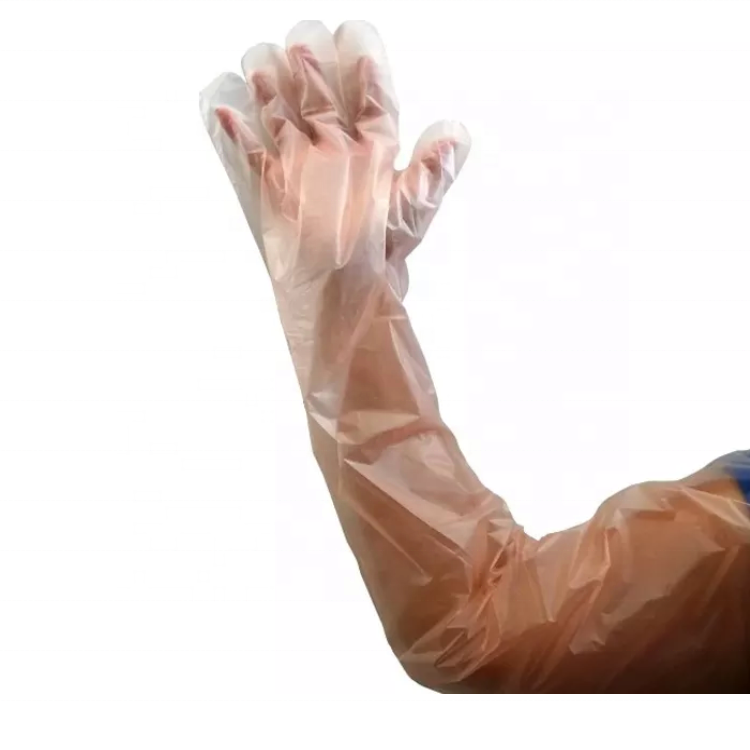 Okuny ถุงมือทำความสะอาดทำจากพลาสติกแบบยาวมีแถบยางยืดสำหรับถุงมือสัตวแพทย์แบบใช้แล้วทิ้ง
