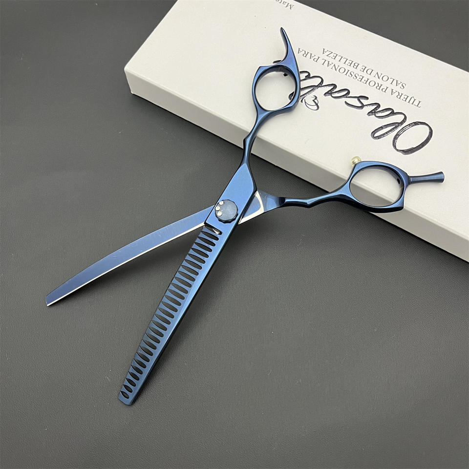กรรไกรตัดขนสัตว์เลี้ยง Olasgon รุ่นโค้ง K-7 นิ้ว ทำจากสแตนเลส สำหรับสุนัข