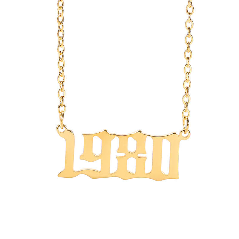 สร้อยคอจี้ตัวเลขชุบทอง 18k สไตล์อังกฤษโบราณ ปี 1980 ถึง 2024 ทำจากสแตนเลส เหมาะสำหรับเป็นของขวัญวันเกิด