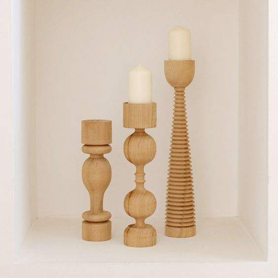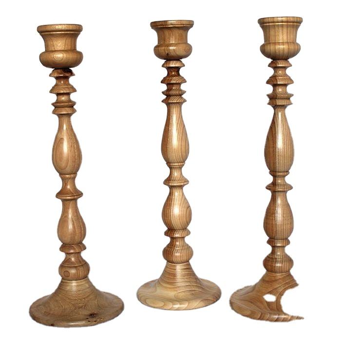 เชิงเทียนไม้ขัดเงาสำหรับตกแต่งบ้านเชิงเทียนแบบเก่าคุณภาพสูง