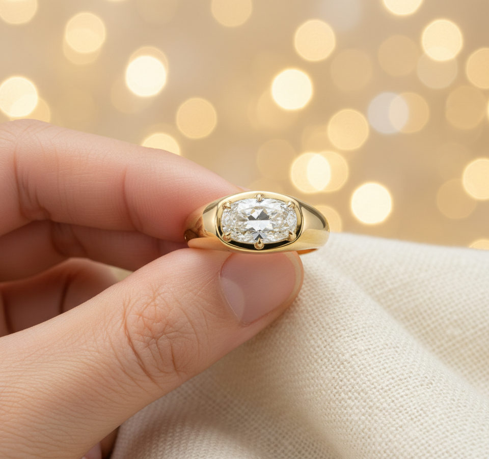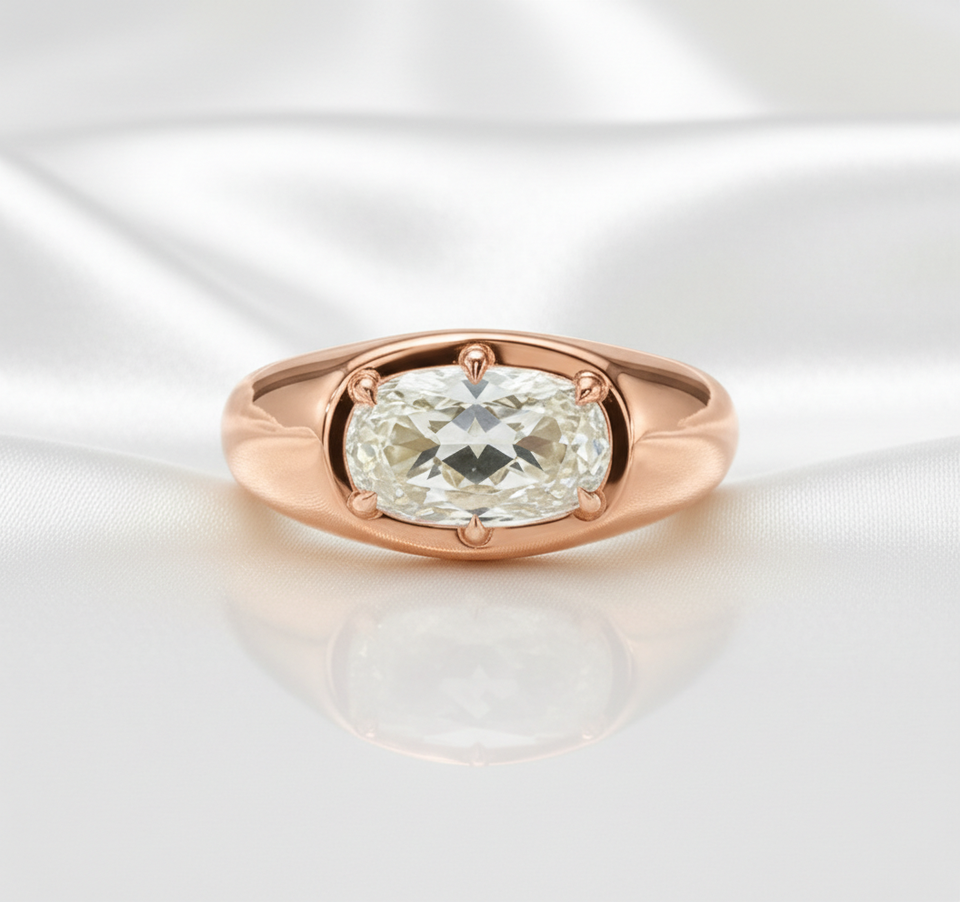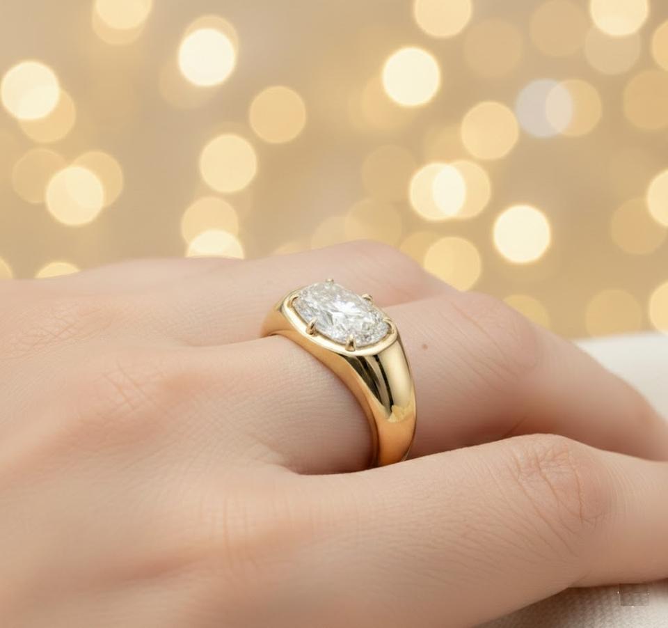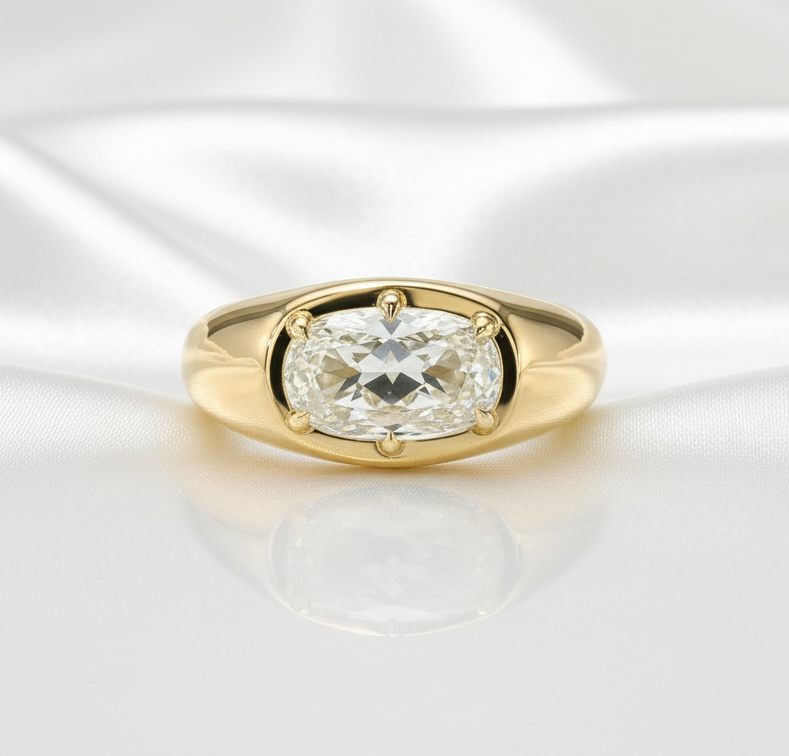 แหวนหมั้นมอสซาไนต์ทรงคุชชั่น 3 กะรัต แบบคลาสสิค ตัวเรือนแบบกรงเล็บยิปซี รุ่น Old Mine สำหรับวันครบรอบ สำหรับทั้งชายและหญิง