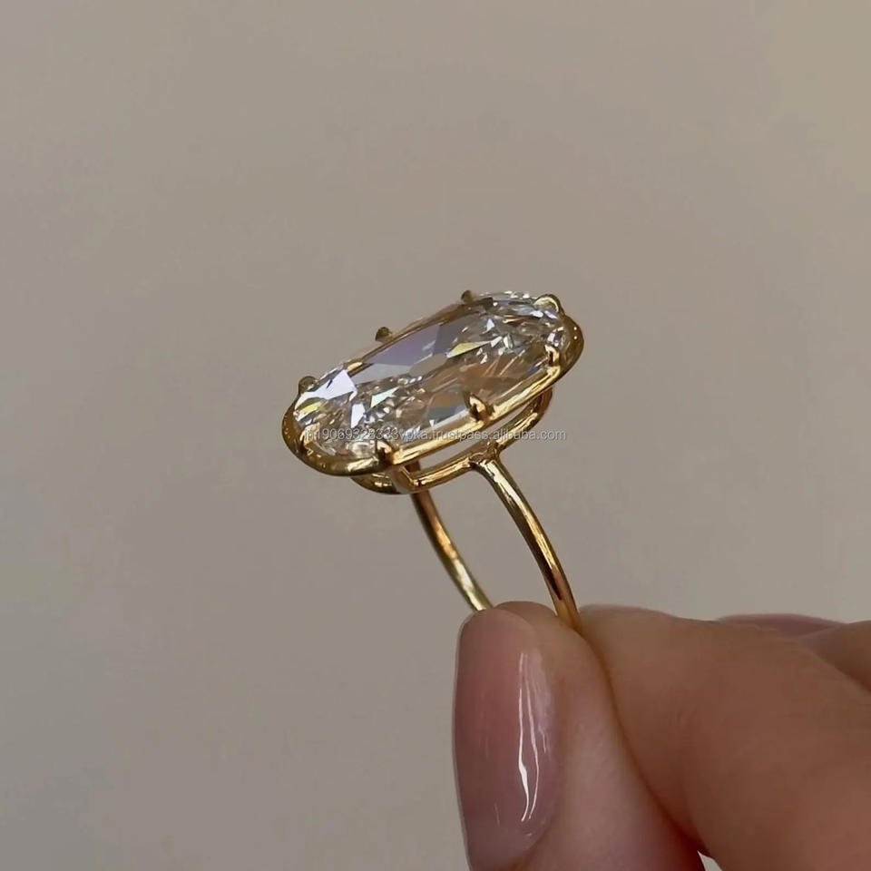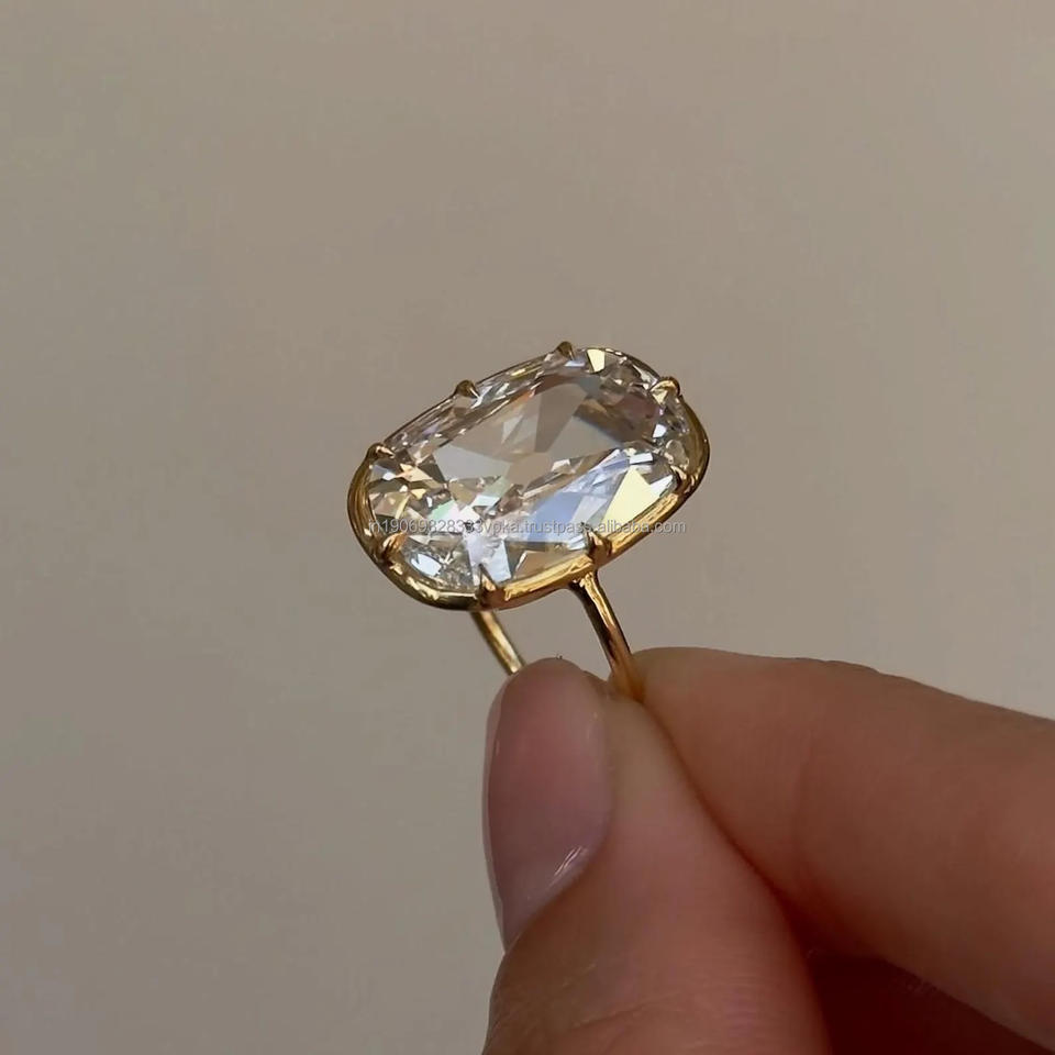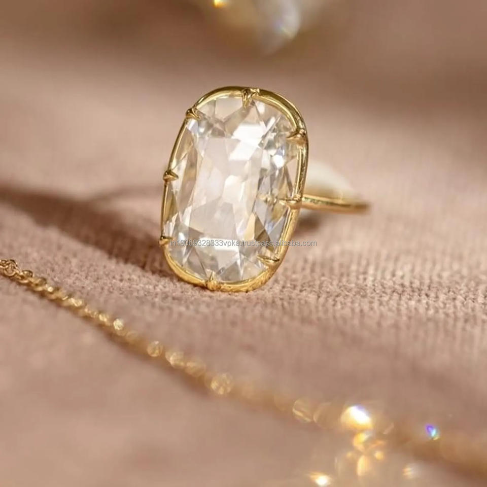 แหวนหมั้นเพชรโมอิสซาไนต์ทรงยาวรูปทรงคุชชั่น 5 กะรัต รุ่น Old Mine ประดับขอบโรเดียมชุบ บนตัวเรือนเงินแท้ 925 สำหรับงานแต่งงาน