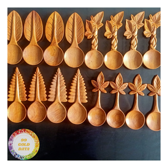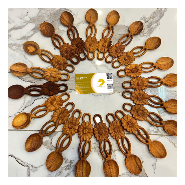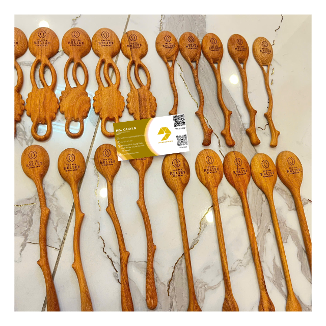 ช้อนไม้รูปหัวใจ ด้ามจับใบไม้ ช้อนไม้รูปหัวใจ ของตกแต่งบ้านและของขวัญ ช้อนไม้รูปหัวใจ - CARYLN