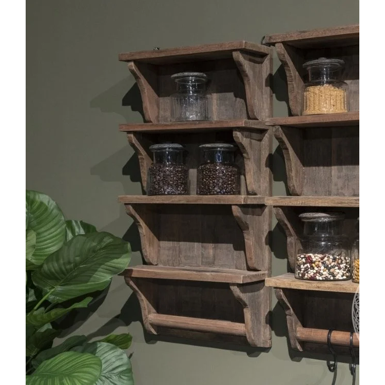 ชั้นวางของติดผนังสไตล์กระท่อมไม้เก่า 80x40x16 ซม. พร้อมตะขอ รับน้ำหนักได้ 15 กก. ชั้นวางโชว์สินค้าทันสมัย