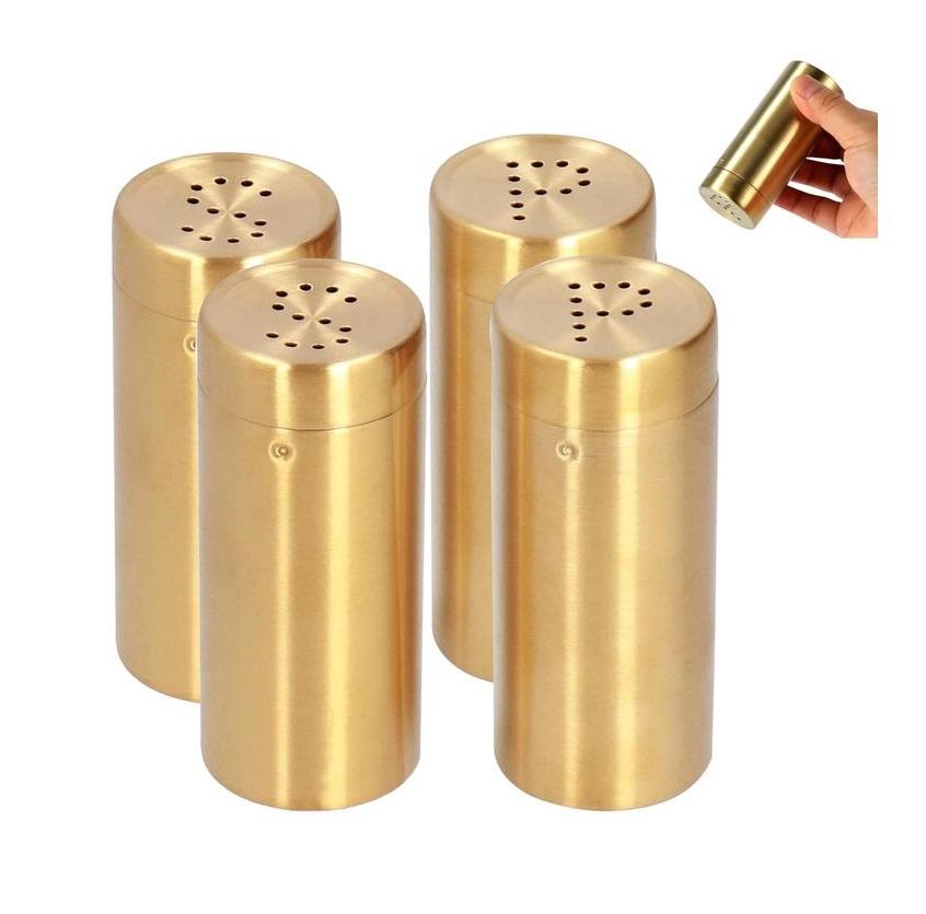 ชุดเครื่องปั่นเกลือพริกไทยทองเหลืองหนักแบบเก่าที่มีโครงสร้างทนทานสำหรับห้องครัวที่มีระดับและการนำเสนอบนโต๊ะ